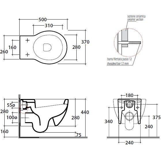 Унитаз подвесной (чаша) Globo Bowl 50х37 - Характеристики