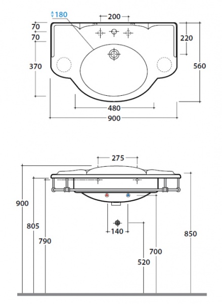 | Особенности: | раковины ширина 90 см, раковины белые, раковины подвесные |