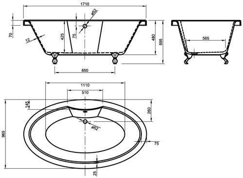 Особенностью акриловой ванны Knief & Co FUTURE являются прочные металлические ножки и приятная овальная форма.