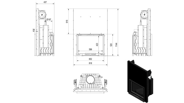 | Высота лицевой части топки: | 52 см |