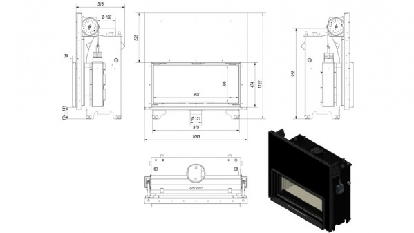 Топка с вместительнам теплообменником целиком изготовлена из высококачественной 4 мм котловой стали. Дверца каминной топки имеет гильотинный принцип открывания - вверх.