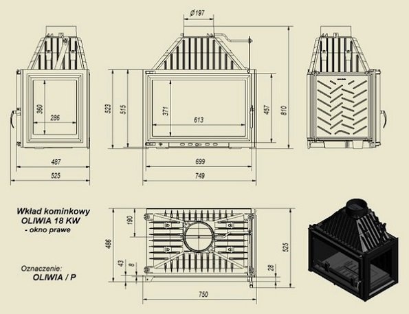 Топка Kratki Oliwia/P (стекло справа) - Характеристики