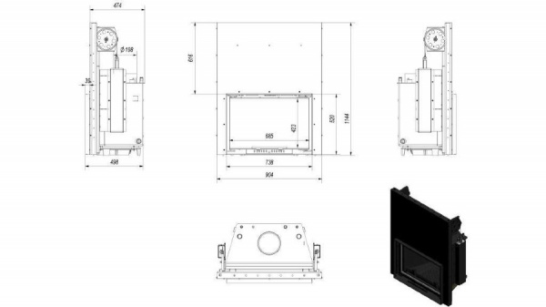 Каминная топка Kratki Wiktor/PW/12/W/G с водяным контуром.