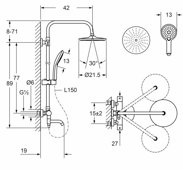 | Размер верхнего душа: | 21.5 см |