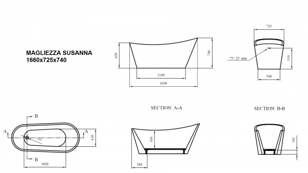 Акриловая ванна с высокой спинкой Magliezza Susanna - Характеристики