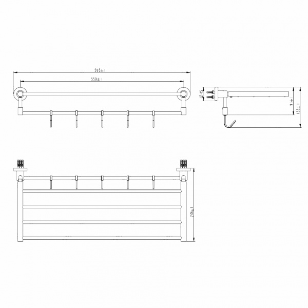 Полка для полотенец с крючками Melana AISI 304 сатин MLN-S2221 - Характеристики