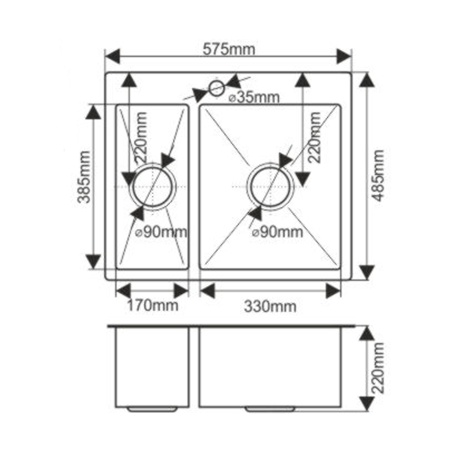 Двойная мойка ProfLine сатин H575485S встраиваемого типа установки.