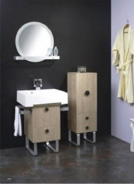 Тумба оснащена раковиной для ежедневных гигиенических процедур. Раковина выполнена из полимеркерамики. В самой тумбе имеется два ящика. Такая продуманная система организации пространства позволяет быстро навести порядок в ванной.