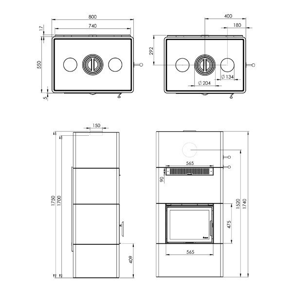 Печь-камин для дома и дачи Nordpeis Salzburg L с конвекцией - Характеристики