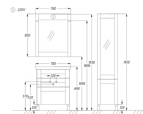 | Размер тумбы (ШхГхВ): | 70 см х 49 см х 89 см |