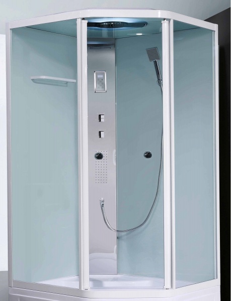 Это комфортабельная закрытая конструкция, созданная для вашего удобства. Имеет небольшие габариты и достаточно высокие бортики поддона. Оснащена дополнительными функциями для гидромассажа, вентиляцией, подсветкой, ручным душем и другими приятными опциями.