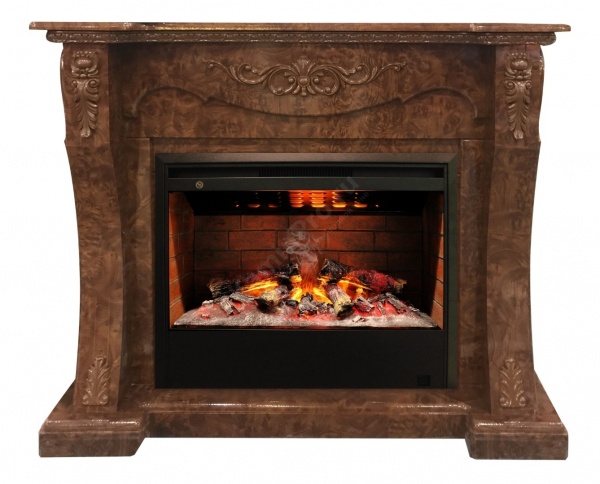 Портал Olivia выполнен в утонченном классическом стиле, органично украшен резьбой по дереву. Очаг Helios с потрясающим эффектом 3D пламени и очень реалистичным муляжом прогоревших дров.