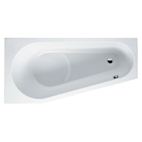 Асимметричная ванна Delta 160 R белого цвета из акрила пристенной установки.