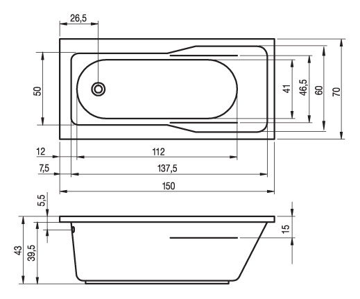 Прямоугольная акриловая ванна Riho Klasik 150 - Характеристики