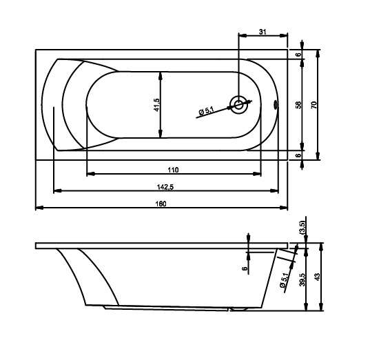 | Особенности: | ванны длина 160 см, ванны белые, ванны 160х70 |