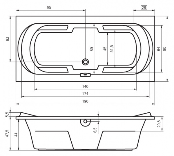 Прямоугольная акриловая ванна Riho Montreal 190 - Характеристики
