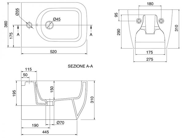 Биде подвесное Scarabeo Teorema 2.0 5127 белый - Характеристики