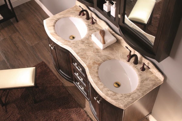 В ассортименте представлены роскошные коллекции гарнитуров для ванных комнат, в которые входят тумбы, столешницы с раковинами, шкафчики и зеркала.
