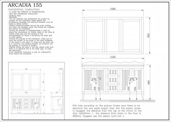 Тумба с раковиной Tessoro ARCADIA 155 - Характеристики