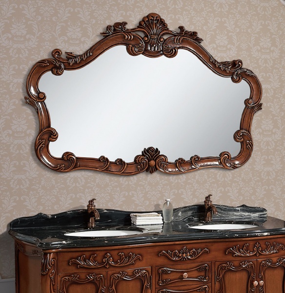 Этот элемент является универсальным предметом меблировки ванной комнате. Зеркало удобно в процессе ежедневной эксплуатации благодаря своей безопасности и простоте. Роскошный дизайн подходит под любой ванный интерьер, выполненный в классической стилистике.