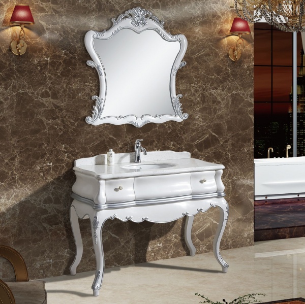 В ассортименте представлены роскошные коллекции гарнитуров для ванных комнат, в которые входят тумбы, столешницы с раковинами, шкафчики и зеркала.