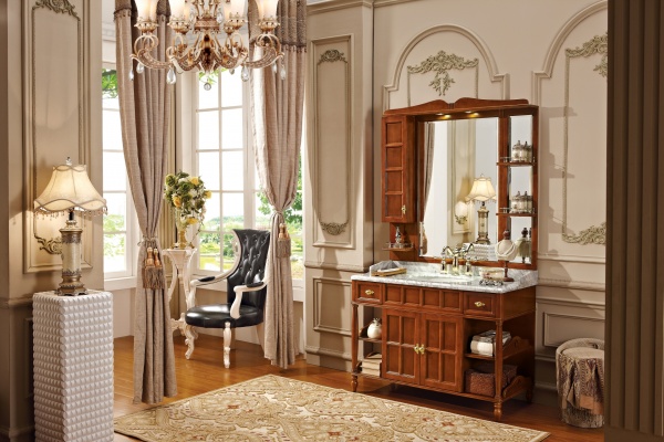 В ассортименте представлены роскошные коллекции гарнитуров для ванных комнат, в которые входят тумбы, столешницы с раковинами, шкафчики и зеркала.