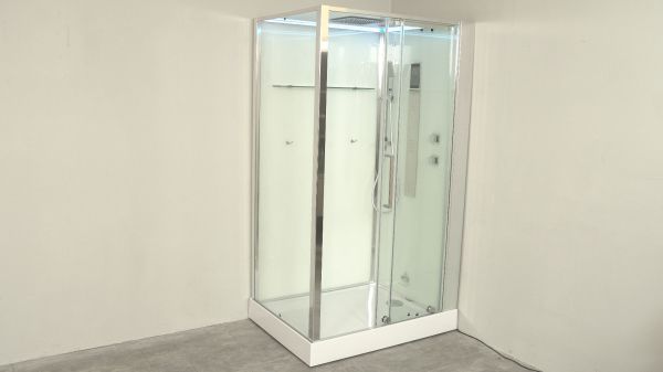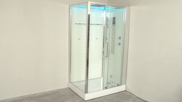 Комплектация: Тропический душ, Лейка, Однорычажный смеситель, Вентиляция, Стеклянная полочка, Ручки, Турецкая баня
