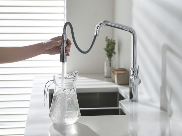Смеситель с выдвижной 2-х режимной лейкой относится к премиальному сегменту, предназначен для монтажа на кухонную мойку или столешницу. Высокий излив подходит для моек с двумя чашами, а также позволяет справляться с мытьем габаритной посуды. Удобное (вертикальное) расположение рычага смесителя в крайнем положении "холодный старт", позволяет не задевать ручкой за стеновые панели, фартук, предметы, которые находятся за смесителем. Картридж с функцией "холодный старт" работает в диапозоне 90 градусов, рычаг установленный в исходное положение (вертикально) при открытии подает только холодную воду, а не 50% холодной воды плюс 50% горячей, позволяя экономить до 30% расход горячей воды. Для подачи горячей воды необходимо повернуть рычаг на себя. Выдвижная лейка с прочным шлангом длинной 400мм облегчает мытье раковины, крупной посуды, позволяет набрать воду в емкость, стоящую рядом с мойкой.