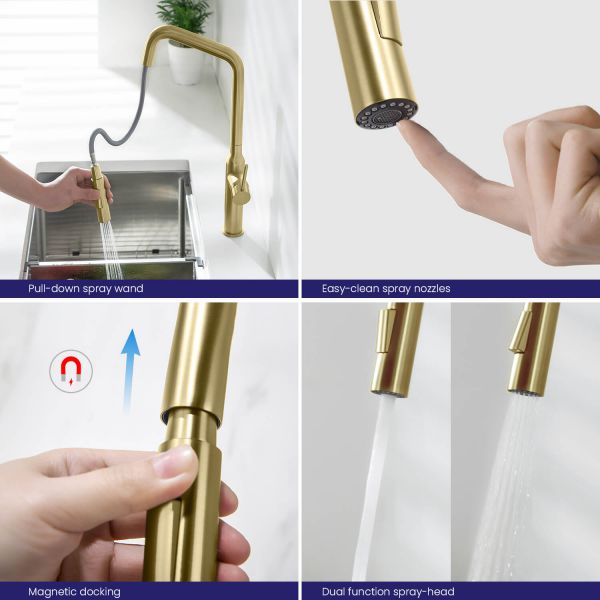 Смеситель с выдвижной 2-х режимной лейкой относится к премиальному сегменту, предназначен для монтажа на кухонную мойку или столешницу. Высокий излив подходит для моек с двумя чашами, а также позволяет справляться с мытьем габаритной посуды. Удобное (вертикальное) расположение рычага смесителя в крайнем положении "холодный старт", позволяет не задевать ручкой за стеновые панели, фартук, предметы, которые находятся за смесителем. Картридж с функцией "холодный старт" работает в диапозоне 90 градусов, рычаг установленный в исходное положение (вертикально) при открытии подает только холодную воду, а не 50% холодной воды плюс 50% горячей, позволяя экономить до 30% расход горячей воды. Для подачи горячей воды необходимо повернуть рычаг на себя. Выдвижная лейка с прочным шлангом длинной 400мм облегчает мытье раковины, крупной посуды, позволяет набрать воду в емкость, стоящую рядом с мойкой. Встроенный магнитный держать позволяет легко вернуть лейку в исходное положение.