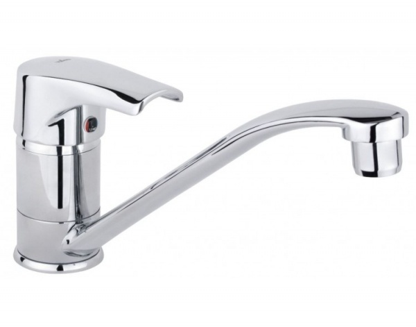 Конструкция смесителя выполнена с учетом применения комплектующих, позволяющих экономить потребляемую воду. Модель оснащена одной ручкой для регулировки температуры и напора воды для работы в кухонной мойке – такая конструкция называется однорычажной.