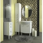 В процессе производства используются натуральные древесные материалы и специальное влагостойкое покрытие фасада. Модель украшена эффектными ручками и белоснежной раковиной, изготовленной из белоснежного санитарного фаянса безупречной прочности.