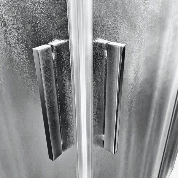 Душевой уголок размера 1000×800, направляющие из хрома, со стеклом 6 мм. Две двери, Раздвижные, ширина входа - 512 мм. Установлены удобные ручки для открытия дверей. Отщелкивающиеся нижние ролики, верхние ролики из нержавеющей стали.