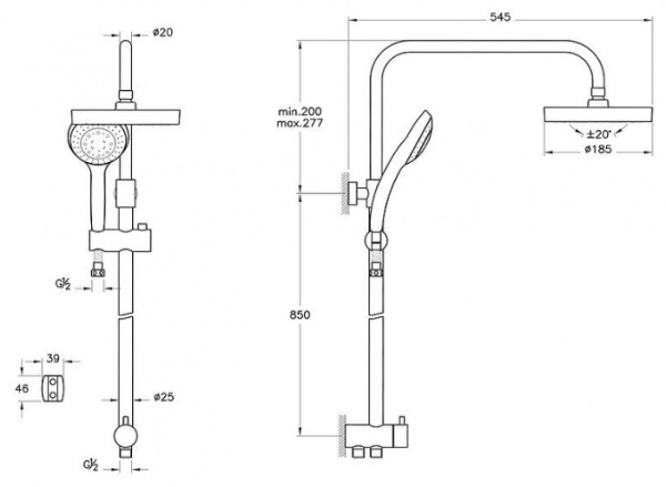 Душевая стойка Vitra A45597EXP с тропическим и ручным душем.