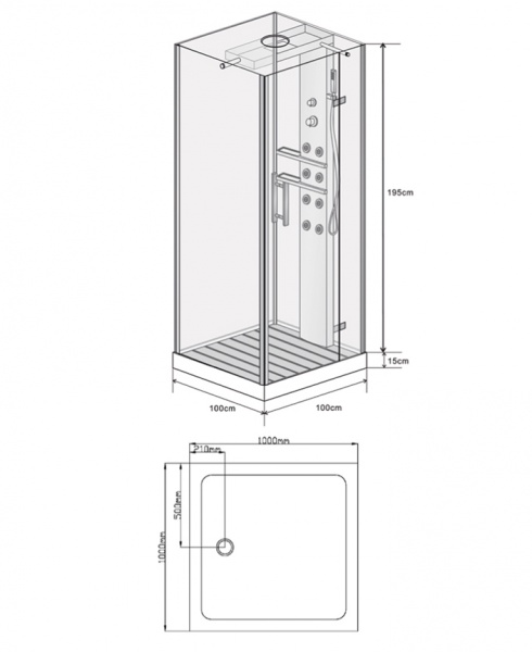 | Оптимально подходит как: | 100х100 см, стандарт, квадратные, стеклянные, с гидромассажем, с крышей (закрытые), с низким поддоном, с сиденьем, с тропическим душем |