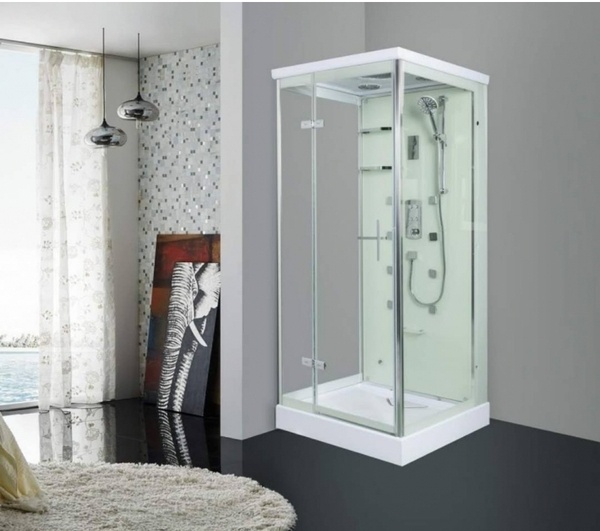 Помимо этого, в кабине функционируют гидромассажные форсунки. Монтаж кабины осуществляется без силикона. Внутри конструкции свободно помещается высокий человек, ведь её внутренняя высота составляет два метра.
