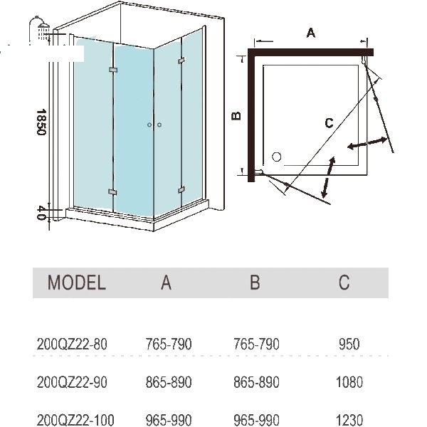 Душевое стеклянное ограждение WeltWasser WW 200QZ22-90 - Характеристики