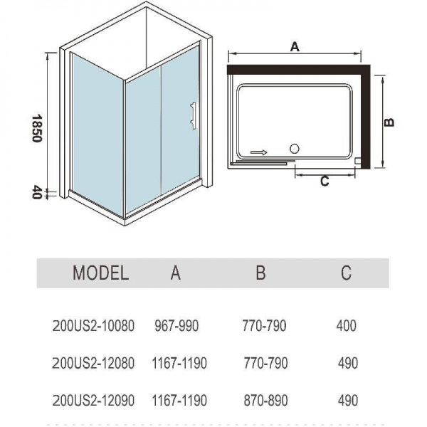 Душевое стеклянное ограждение WeltWasser WW 200US22-12080 - Характеристики